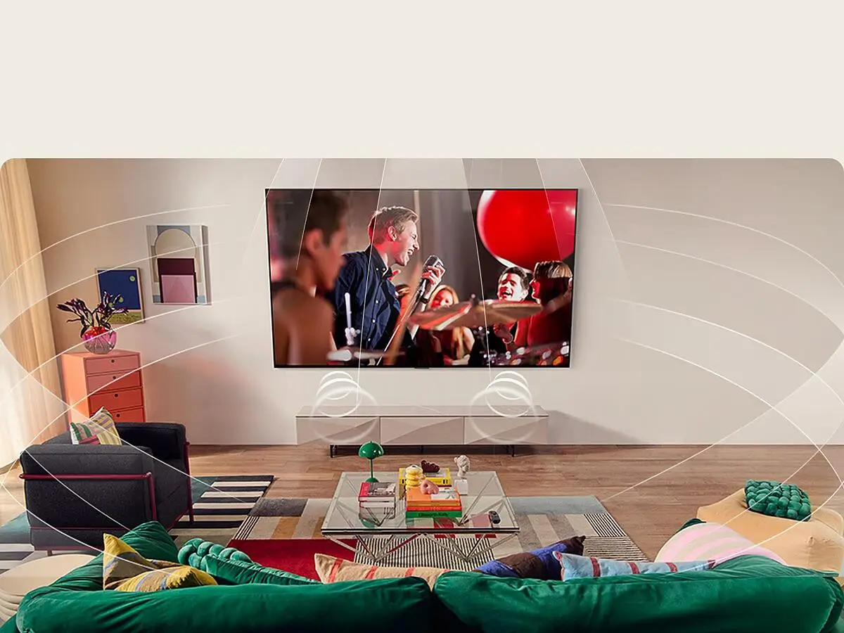 Het krachtige 2.0-audiosysteem van de LG QNED AI-tv’s, uitgerust met AI Sound Pro en Virtual 9.1.2 Up-Mix, levert een sterk naar beneden gericht geluid voor een indrukwekkende audio-ervaring. AI Clear Sound verbetert de spraakverstaanbaarheid door nauwkeurige tooncorrectie, terwijl Dynamic Sound Booster AI-verwerking gebruikt om de diepte en dynamiek van het geluid te versterken. Voor een nog meeslependere surround-ervaring kunt u uw LG-soundbar verbinden met de tv via WOW Orchestra (mits de soundbar deze functie ondersteunt) en genieten van een perfect gebalanceerd geluidslandschap.